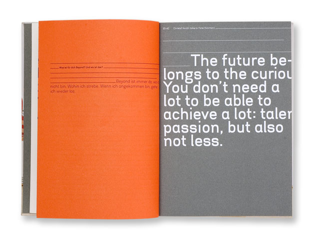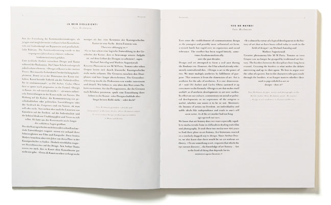 The studio “Fons Hickmann m23” is run by Gesine Grotrian-Steinweg and Fons Hickmann since 2001. It is one of today's most awarded design studios; virtually every work has won a prize of international reputation. It varies a lot in size and scope: “There are seven of us at the moment, sometimes there are four, sometimes fourteen” says Gesine. The staff originates from Austria, Germany and Switzerland. The Berlin studio focuses on the design of complex communication systems. Its activities include corporate design, book and poster design, magazine design and digital media. The work is conceptual and analytical but at the same time has an enormous sense of humour. Gesine Grotrian-Steinweg is an Illustrator and lectured communication design and typography at the Universität Gh in Essen. Fons Hickmann has taught at several Universities, held lectures and workshops around the world and is a professor at the Universität der Künste Berlin. He is a member of the ADC, TDC New York and the AGI Alliance Graphique Internationale.