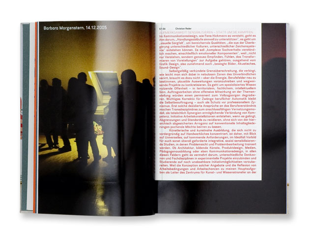 If a University has got such an outstanding reputation that it attracts talents and lecturers from all over the world, and if it suddenly generates work that increasingly sets standards it is due to one or several tutors or professors who take the teachings seriously but not deadly serious, who fathom the limits and extravagate them, who demand a great deal of themselves and others. Open, not just the windows. International, not just the lecturers. Play is allowed, and not just football.