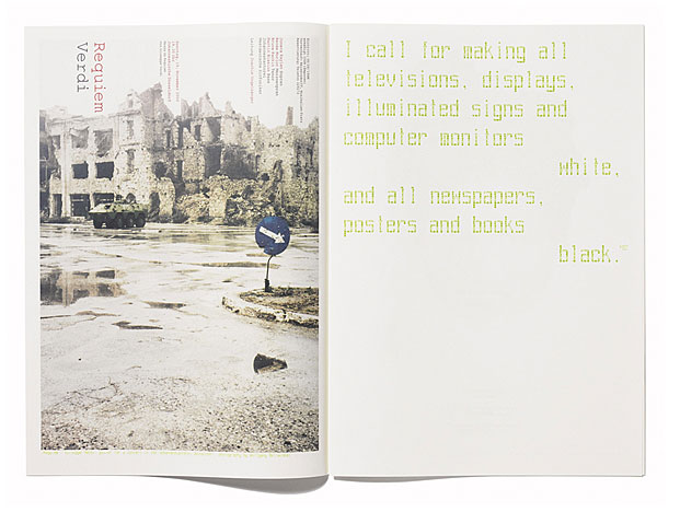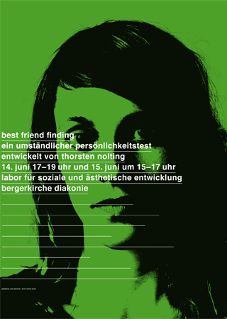 What do I want from work? Philippe Apeloig: Big-bang. Dimitris Arvanitis: I want to interpret the world according to my thoughts, culture and ethos. I want to communicate ideas and informations, speaking with people instead of speaking to people. Erwin K. Bauer: Ongoing enthusiasm along with keeping the playful mood of a child. Kari Bauer: Lots of resistance to generate lust for more. Ruedi Baur: I expect my work to contribute to my personal goal in life: A permanent experimenting, discovering, understanding, learning, redefining, changing, winning, losing, experiencing, retrying process which I pass on after all. I love to design something which is of use for a third, I love to examine a problem, I love to invent something new, I love to develop a process which continues to develop autonomously. Antonino Benincasa: I want to transform prose into poetry. Cari saluti dalla bella Italia! Branquinho: Fashion is not art. I see it in the Streets, I don’t see it in the Museum. You have to show more – you have to show a whole world. Markus Büsges: Fulfilment and confirmation in oneself. Alison Clarke: To pay the bills and transform a very small corner of the universe – with relentless passion. Bill Douglas: Honesty is always good. Whatever it takes to not make things worse. Joseph Foo: To allow and sustain me from what I want from life(1) and love(2). John Foster: Work to me is much like my marriage. (I have an uneasy feeling about which one I spend more time working on.) I have often thought that if I wanted to just be happy in marriage, I would have wed one of my close male friends and spent my days arguing about sports and swilling beers. Instead, I married a beautiful women who challenges me at every turn and never fails to hold my interest and ultimately... makes me happy. I want much the same from my job. I want to be challenged and never grow stagnant in my thinking. To discover new things - even about a task I have completed numerous times before. I want to be able to branch out into areas that stretch my abilities knowing that I have the support of my talents in the areas I have passed through before. And ultimately I know that these daily struggles and yearning for something more will leave me exhausted... and happy. Reinhard Gassner: Playful learning and liberated frivolity. Heike Grebin: I want it to work for me and others. Hansa Günther: Fun and money. Juli Gudehus: Rejuvenation. Frank Hartmann: Work then, lovin’it, right? Jianping He: Being understood without comment. Achim Hickmann: Yesterday = money for working. Today = sex at working. Tomorrow = money for working. Robert Klanten: Freedom and challenge. Bernhard Kleber: Passion. Petra Knyrim: Money money money + sun sun sun. Barbara Kotte: Work gets inspired by live. Janna Krenn: Freedom. Axel Kufus: Work. Urs Lehni: To lure me out of my shell - maybe. Armin Lindauer: I don’t understand what actors do. I can hardly act out myself. Sophie Lovell: Warm hands. Andrea Lugli: Do better things. My things. Wilf Moss: Enough money to survive. Admiration and inspiration as bonus features. Reiner Nachtwey: Achievement. Christian Reder: For me work means: not acting like a money-maker or just belonging to a hired work force, but contributing in some way to positive social changes by at least irritating common »no-alternative« main streams. That our system doesn’t allow for most people to have such a chance (and the privileged few who do, don’t make use of it) is clear on a global scale, and shows what is still going wrong (and always will, it is said. But why?). Stefan Sagmeister: Thinking about ideas and content freely – with the deadline far away. Working without interruption on a single project. Using a wide variety of tools and techniques. Travelling to new places. Working on projects that matter to me. Having things come back from the printer done well. Nicole Schade: Challenge and easy money. Clemens Schedler: Nothing. I just do it... Ralph Schraivogel: From work I want that it makes me feel alive. Thomas Stricker: A lovely life. Niklaus Troxler: Work brings variety and tension into my life. When I’m starting a new project I always hope to get surprised myself, to discover something new what I never reached. The older I get the more I feel that know-how and knowledge are the real killer to reach new discoverings. Today I know that I have to liberate from all I know and already have done. I only can reach new results when I’m free in my mind and can forget everything I’ve ever done. Anja Vormann: Money. Henning Wagenbreth: I can’t answer that spontaneously. I’m thinking way too complicated. I have no time to think about it at the moment and I don’t want to recycle something already written. Alex Ward: To keep opening doors to see what lies behind them.